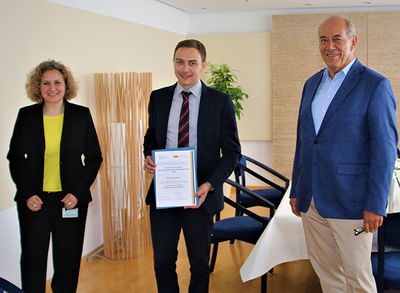 Ms Maria Gürlich was honoured for her Master's thesis ‘The Impact of Municipal Mergers on Local Business Taxes’ with Professor Dr Georg Wamser, University of Tübingen, Chair of Finance.