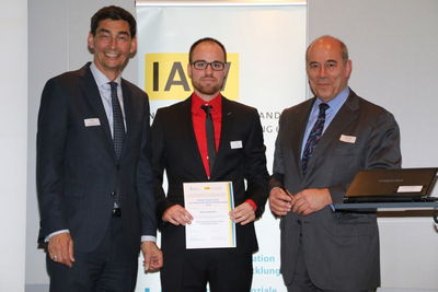 Mr Pascal Sturm was awarded for his Master's thesis ‘Business Cycle, Uncertainty and Sentiment Effects on Asset Prices - An Econometric Analysis’ with Professor Dr Joachim Grammig, University of Tübingen, Chair of Statistics, Econometrics and Empirical Economic Research at the Faculty of Business, Economics and Social Sciences.