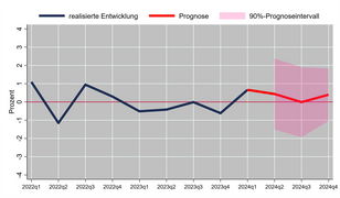 Despite slightly higher current and forecast growth rates, economic development in Baden-Württemberg remains subdued. There is still no sign of a consistent upward trend. According to the latest nowcast from the Institute for Applied Economic Research (IAW) and the University of Hohenheim, gross domestic product (GDP) - adjusted for seasonal and working-day effects - will increase at a growth rate of 0.4% in the second quarter of 2024 compared to the first quarter. However, this positive development may not be sustainable, as forecasts for the third and fourth quarters predict a temporary return to zero growth.