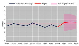Following the year of recession in 2024, gross domestic product (GDP) in Baden-Württemberg could grow slightly again in 2025. For the first quarter of 2025, the the current nowcast from the Institute for Applied Economic Research (IAW) and the University of Hohenheim predicts real growth in economic output of 0.2 per cent. The forecast growth rates for the second and third quarters of 2025 are also positive forecast growth rates.